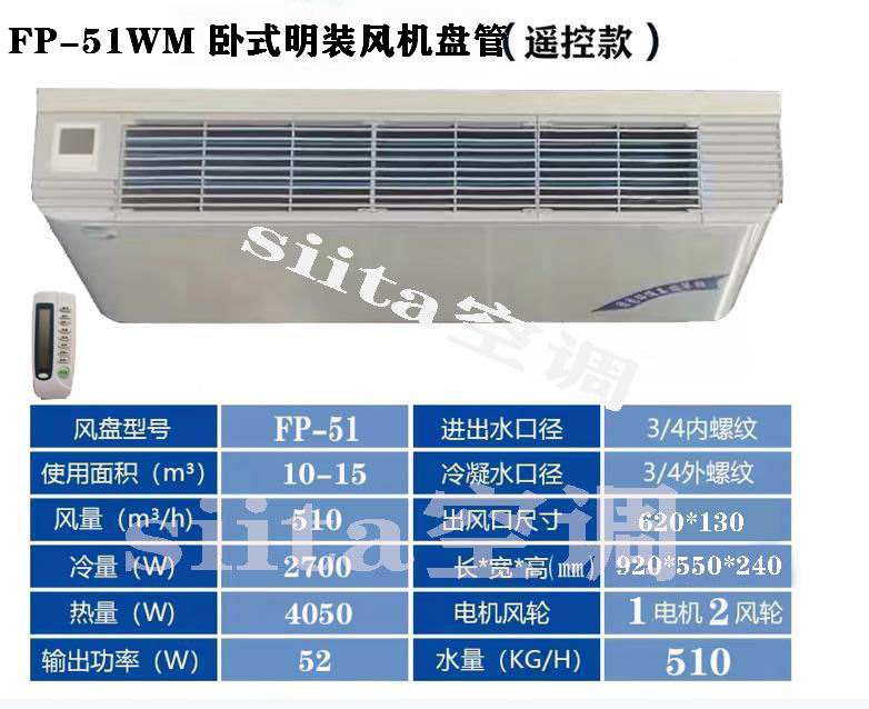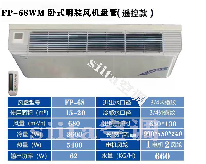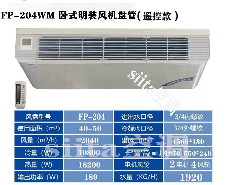 德州春意遙控款siita臥式明裝風機盤管 是一種安裝在房間上部(通常貼頂或吊掛安裝)的空調(diào)末端設(shè)備。與立式明裝一樣,其所有部件及管道均明露在室內(nèi),無需吊頂隱蔽,但它的安裝方位和氣流組織與立式完全不同。