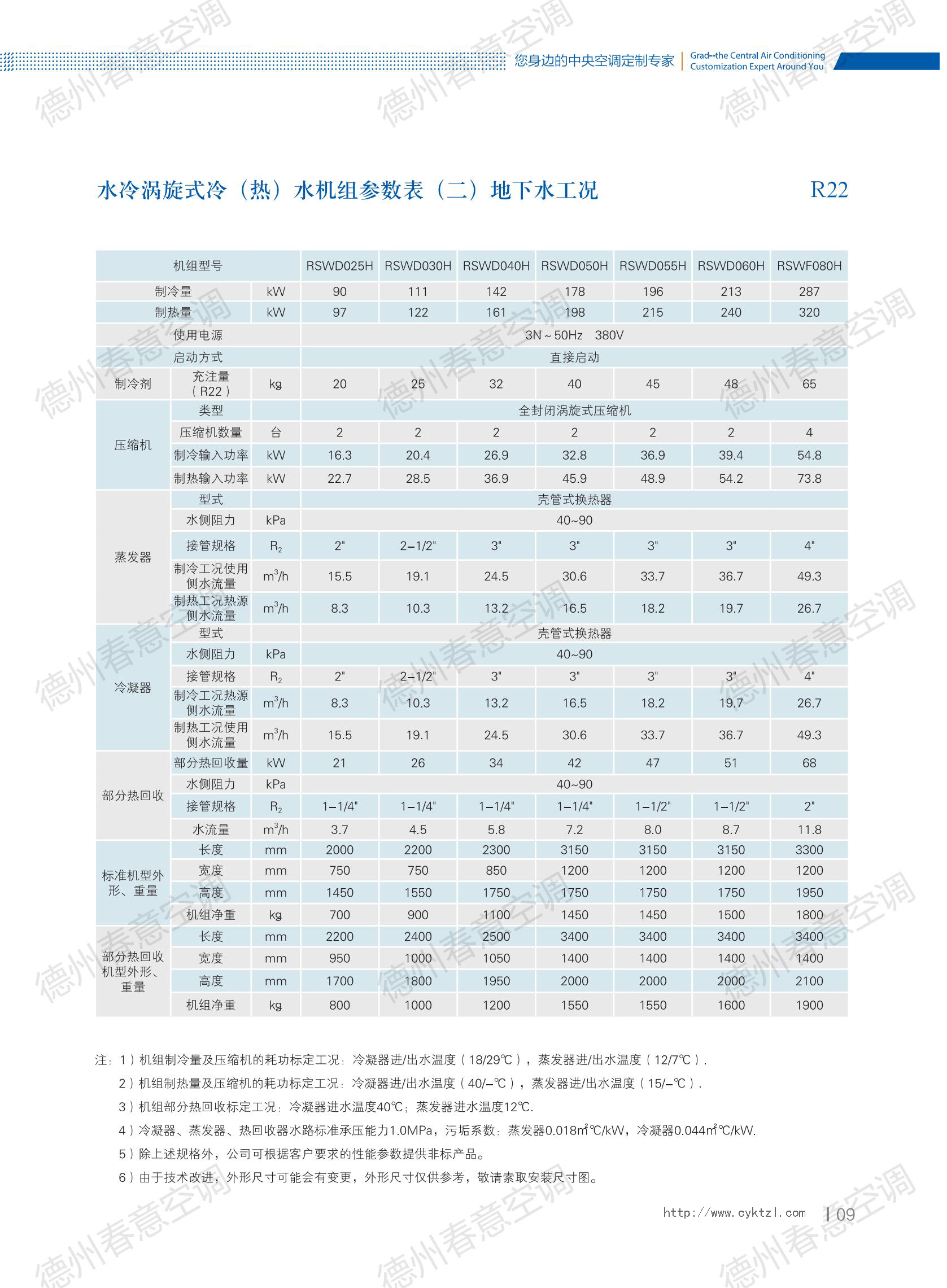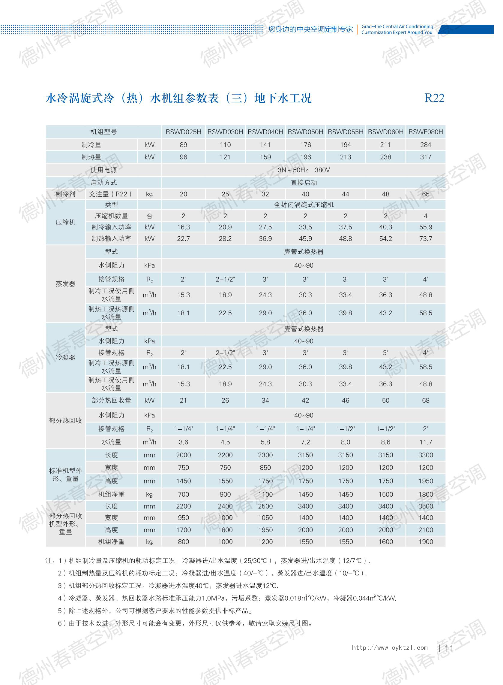 空氣源熱泵參數樣本