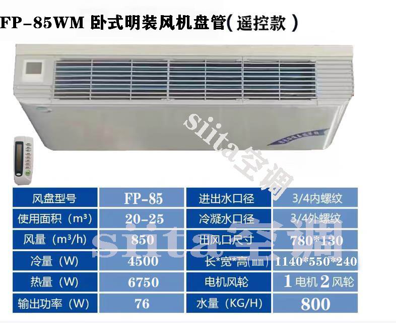 FP-85WM 是中央空調中端主流的臥式明裝風機盤管,額外風量 850m3/h,適配 20-25㎡中大面積空間,主打大風量、換熱功率高、低噪運轉,無需吊頂即可直接吊裝,機身規劃適配各類室內裝飾,是住所大空間、中小型工作 / 商業區域的優選末端設備,兼顧溫控精準度與裝置快捷性。